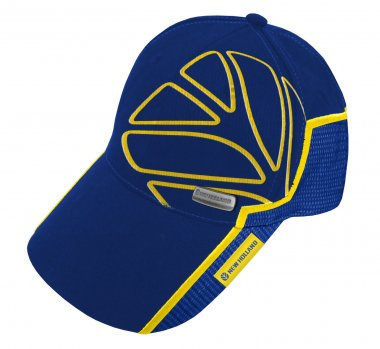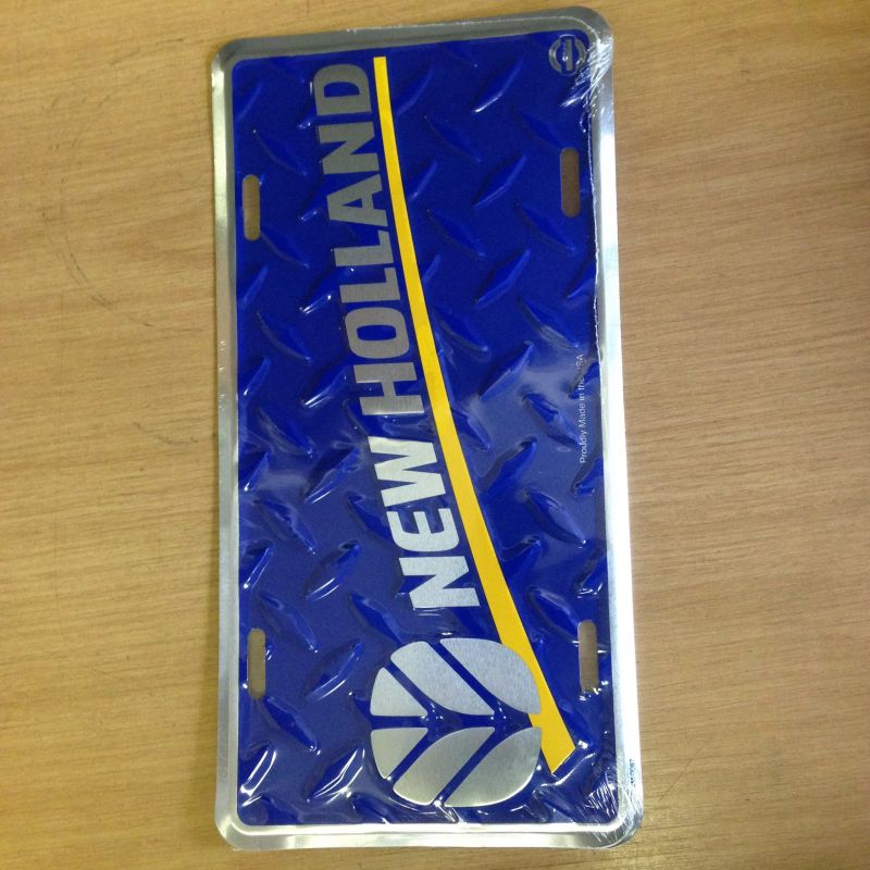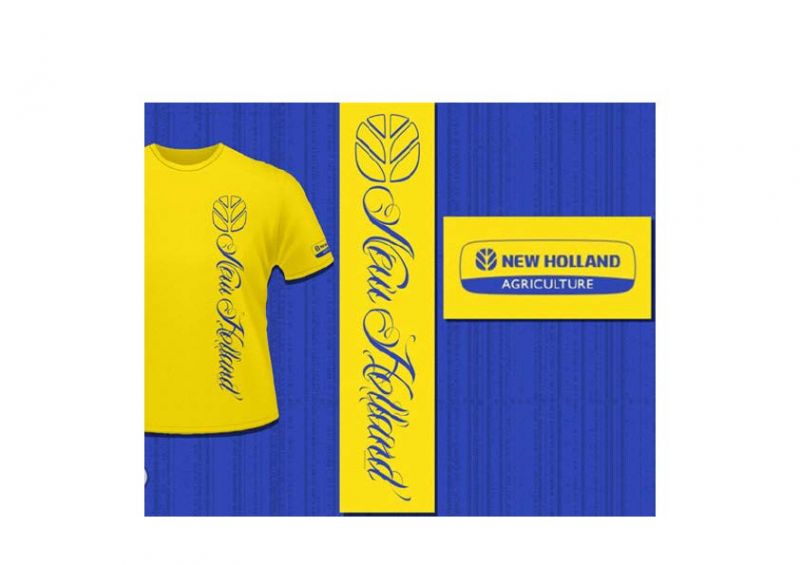New Holland-Blatt-Design auf der Vorderseite mit Metallplakette und gewebtes Etikett auf der linken Seite der Spitze