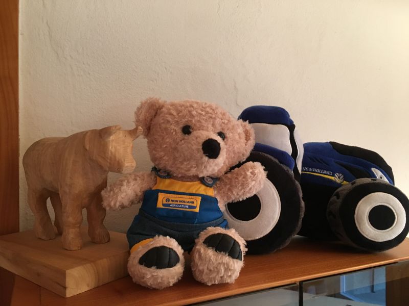 Teddybär mit New Holland Agriculture-Anzug. Größe: 25 cm
